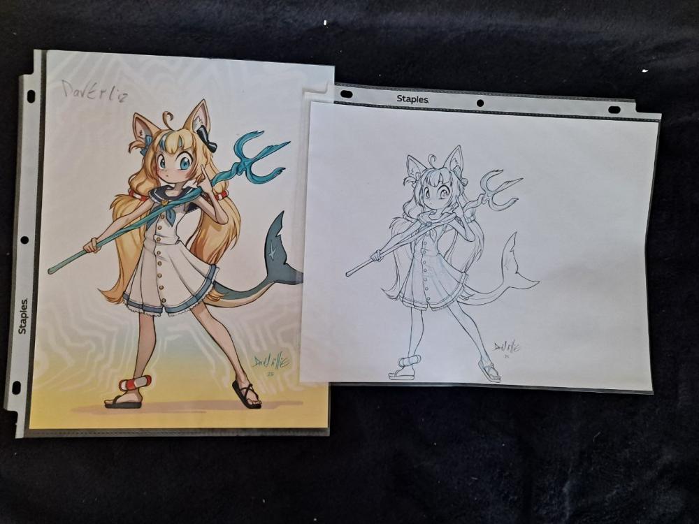 ORIGINAL ART Anime Fish Girl Pencils and Print