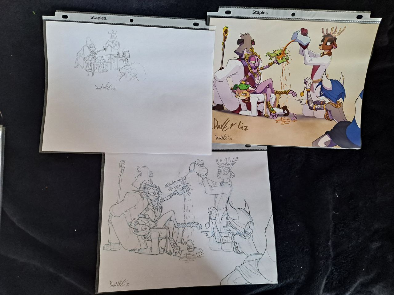 Art is lovingly drawn in non-photo-blue and traditional pencil on 8.5 x 11 printer paper, and comes in a protective plastic sleeve. Art arrives insured in a box.